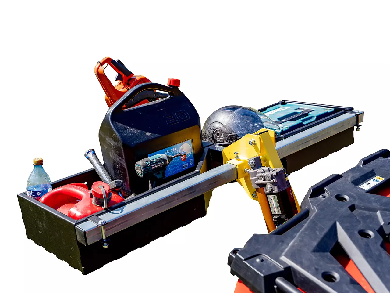 Tillbehörslådan är avsedd att användas tillsammans med Iron Baltics baklyftsystem (produktnummer 84.1000 eller 84.1050). En volym på 70 liter erbjuder gott om förvaringsutrymme och den kan enkelt fästas på din ATV:s baklyft. Med det tillvalda motorsågshållaren (produktnummer 14.7200, ingår inte) kan du säkert och bekvämt transportera din motorsåg.