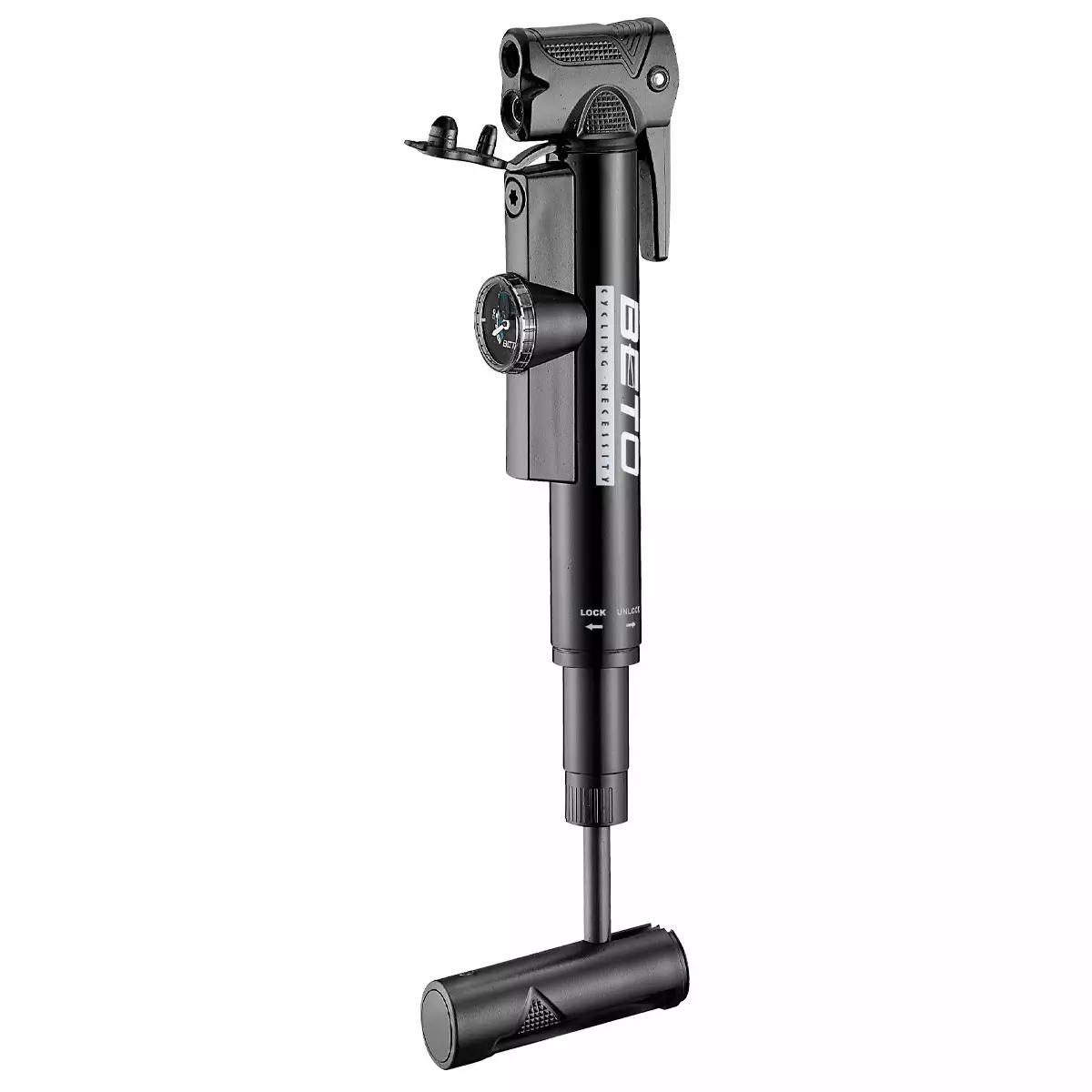 BETO CLD-038 är en lätt och lättanvänd handpump som erbjuder precision och effektivitet i kompakt format. Den tydliga tryckmätaren, teleskopkonstruktionen och kompatibiliteten med alla ventiltyper gör denna pump till ett utmärkt val för alla cyklister.