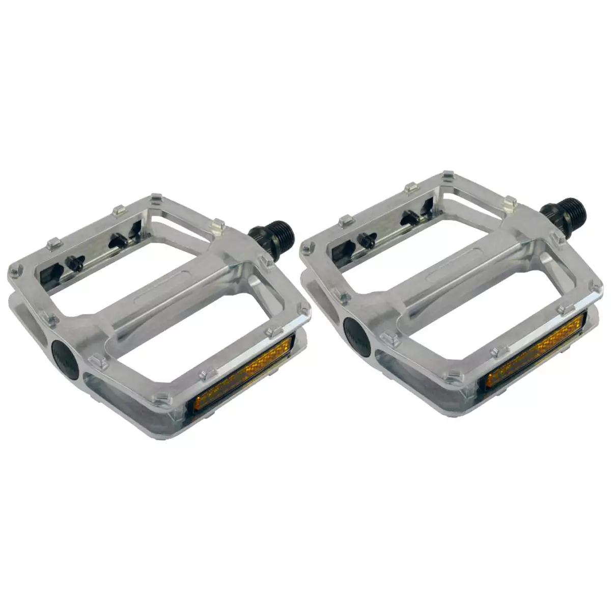 Pedalen är utrustad med integrerade fasta dobbar som ger extra grepp och ser till att skon sitter stadigt på plats. Aluminiumkroppen säkerställer låg vikt och hög slitstyrka, medan reflexer som medföljer ökar synligheten i trafiken. Med måtten 100 x 100 mm är detta en särskilt stabil pedal – även för längre turer.