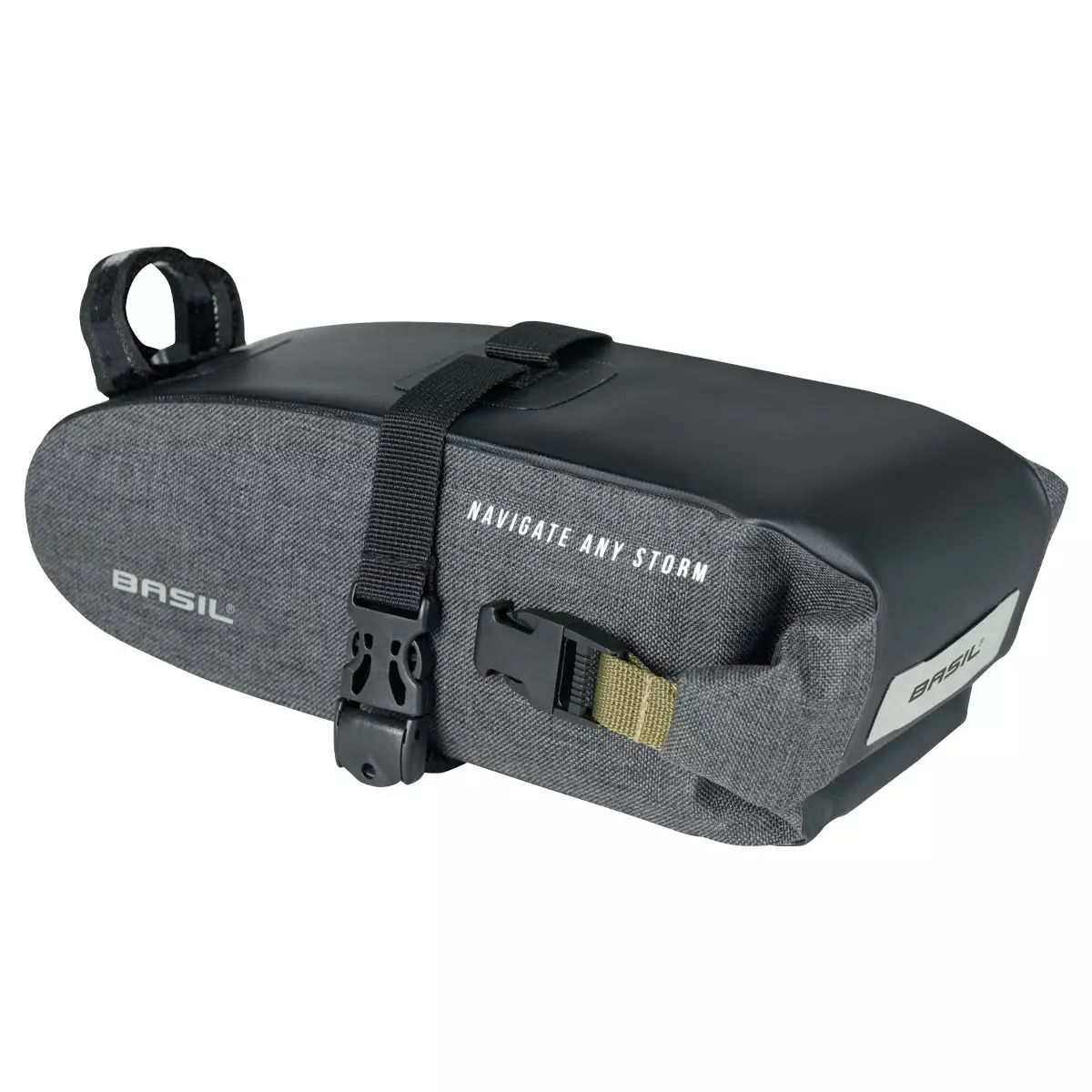 BASIL Navigator Storm sadelväska är utformad för krävande förhållanden där hållbarhet och vattentäthet är av största vikt. Den rymliga väskan på 1,5 liter ger skydd och funktionalitet för både pendlare och aktiva cyklister.
