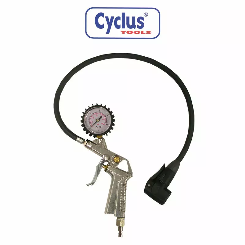 Cyclus Tools däcktrycksmätare med slang erbjuder ett smidigt och exakt sätt att mäta däcktrycket. Denna tryckmätare är utrustad med en slang, vilket gör användningen flexibel och enkel. Munstycket är kompatibelt med både bilventiler och presta-ventiler, vilket gör den lämplig för en mängd olika cyklar och fordon.