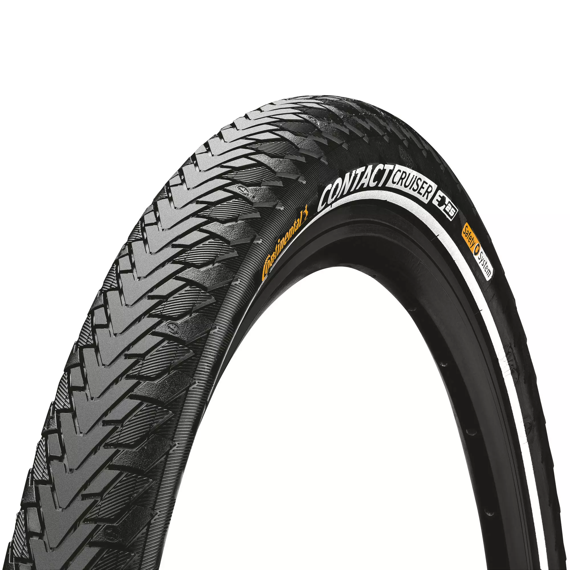Reflexrand ökar synligheten i mörker och skymning och därmed säkerheten i trafiken. SafetySystem Breaker-punkteringsskyddet minskar risken för punkteringar, och den robusta konstruktionen gör däcket slitstarkt och långlivat. Contact Cruiser är dessutom kompatibelt med elcyklar upp till 25 km/h (E-bike 25).