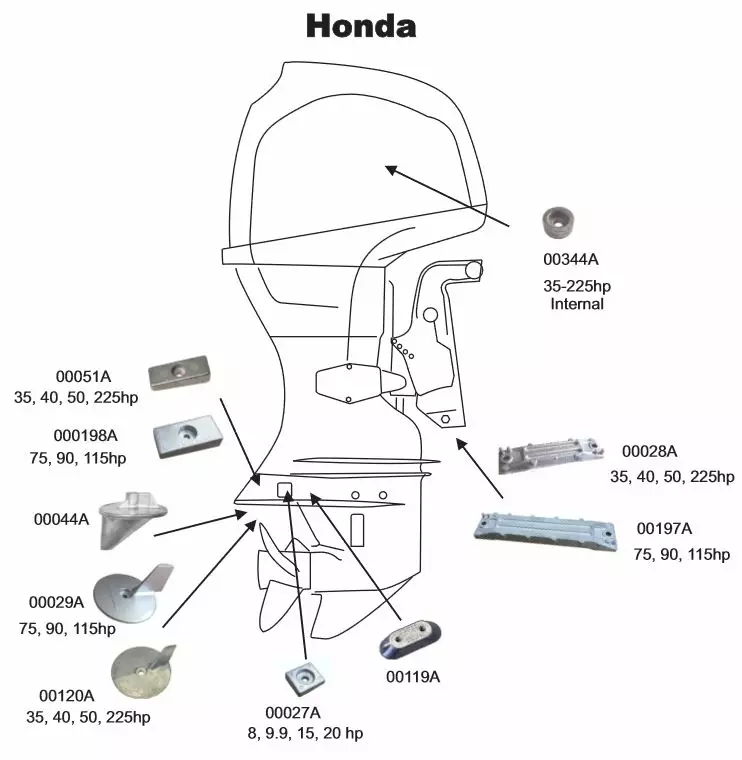 Perf metals anod, Trim Tab Honda