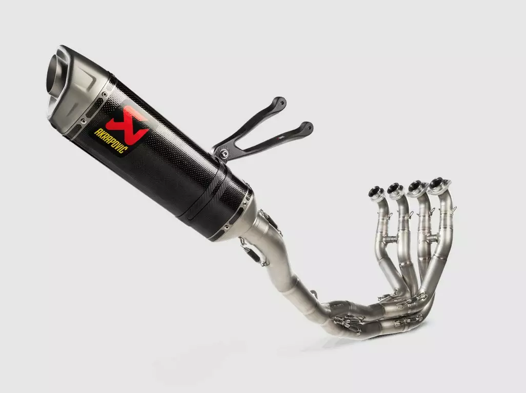 This is a complete system constructed from high-grade, race-proven lightweight titanium alloys. It provides an impressive increase in power across the entire rev range while also improving torque delivery. The weight is decreased by over 6 kg. The system is finished with a hand-crafted carbon-fibre hexagonal muffler – inspired by Jonathan Rea's (Kawasaki Racing Team) World Superbike–winning machine.