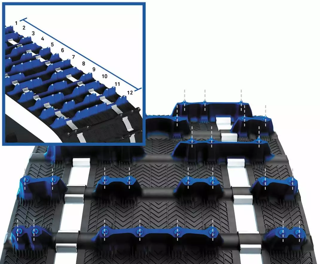 Camso ICE Arrowhead 130 är designad för att ge topprestanda på hård snö och is. Denna ICE-matta är utrustad med 302 dubbar, där den optimerade 15° attackvinkeln maximerar effektiviteten utan att kompromissa med styrka eller vikt. Camso ICE Arrowhead 130 säkerställer en stabil körupplevelse och utmärkt kontroll även på hala och utmanande leder, och erbjuder kraftfull acceleration och säkerhet.