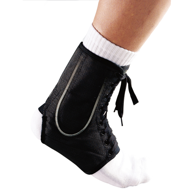 LP 787 vriststöd med snören. Vriststödets flexibla stålfjädrar på båda sidor ger stöd åt fotleden utan att begränsa rörligheten.