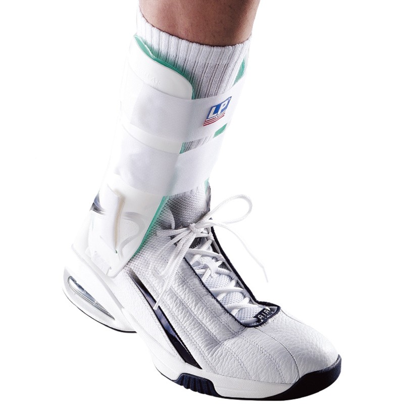 Ett vriststöd med en luft/gelskena hjälper till att förhindra fotledsskador orsakade av vridning eller vridning utan att begränsa benets normala rörelse. Vriststödets två luft/gel-dämpade plastskenor ger utmärkt stöd och komfort för fotleden.