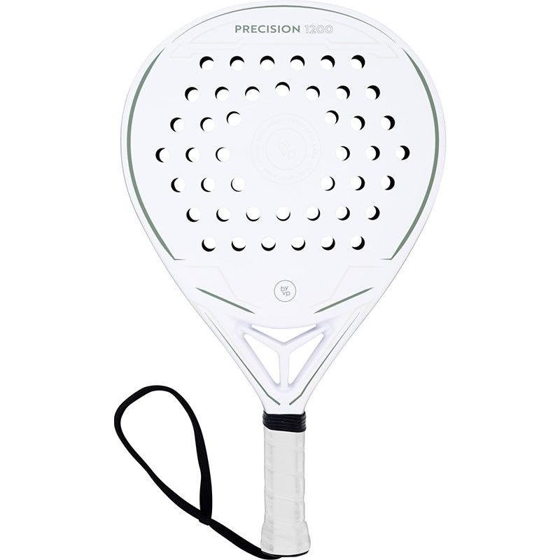 By VP Precision 1200 är en droppformad padelracket med en mycket snygg vit design och gröna accenter. VP Precision padelracket har en kolfiberkropp med en kärna av glasfiber. Racketen har en droppformig design med högre balans och sweetspot. Detta gör det enkelt att växla mellan offensivt och defensivt spel. Eftersom balansen är högre än i en rundklubba kan du slå hårdare. Det droppformade padelracketen passar både nybörjare och avancerade spelare.