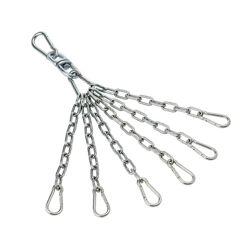 Brute boxningspåses kedja av stål med sex grenande upphängningskedjor. Utrustad med en roterande anslutning och karbinhakar som är lätt att fästa.