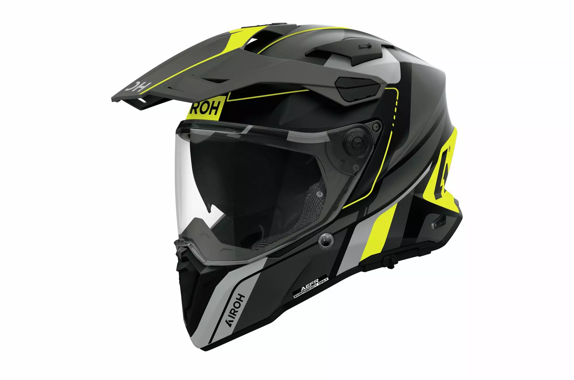 Extra brett visir ger fri sikt både på väg och i terräng. Visiret är reptåligt och UV-skyddat och inkluderar A3S (Airoh Automatic Antifog System), låssystem samt Pinlock® 120 XLT MaxVision-lins, som medföljer i förpackningen.