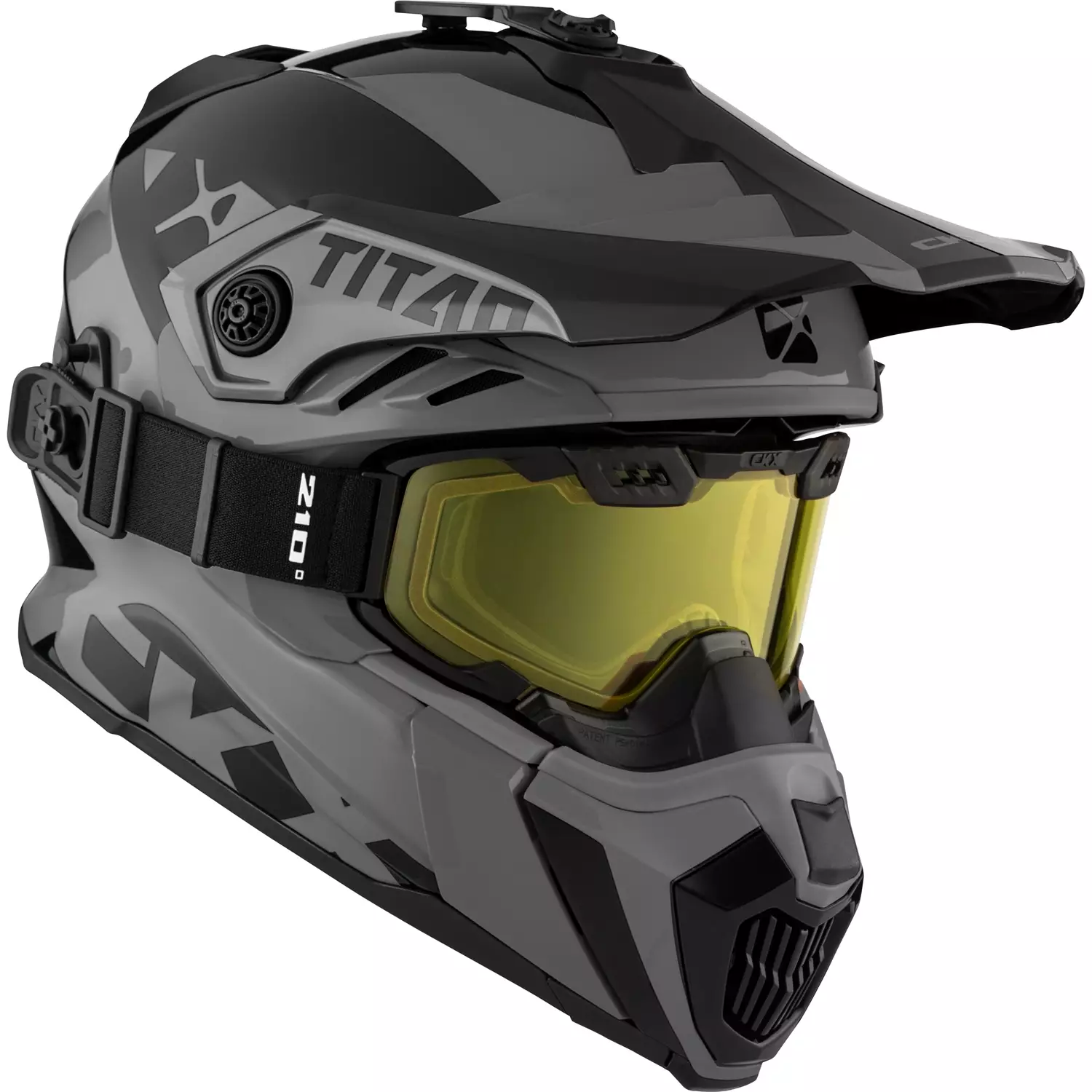 CKX Titan Airflow är en off road -hjälm som lämpar sig väl för vinterbruk. Den kan öppnas framtill vilket underlättar att dricka eller kommunicera. Med följer 210-goggles med gul lins. Löstagbart och tvättbart innerfoder och kindkuddar. Skärmen kan ställas i höjdled.