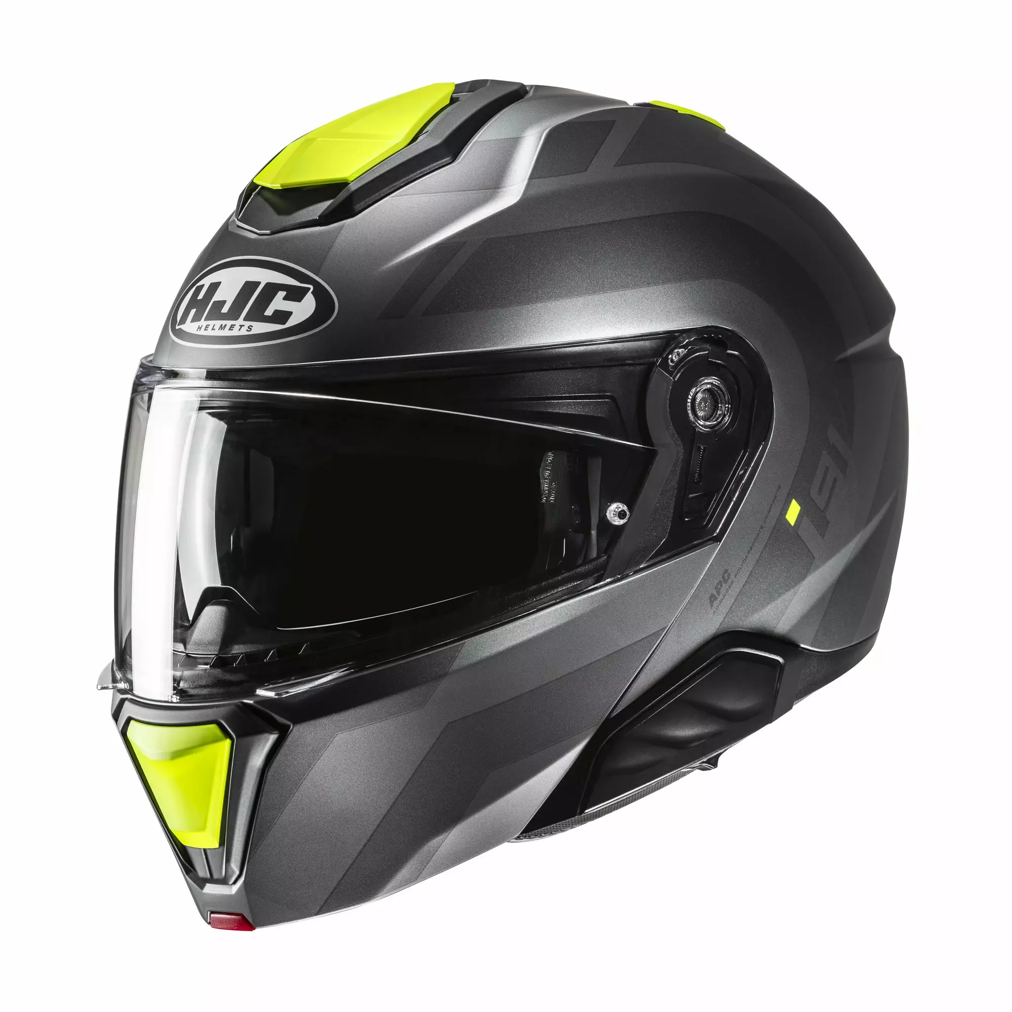 HJC i91 Arven är en lätt och tålig modulhjälm som kombinerar praktisk användning, komfort och säkerhet. Dess Advanced Polycarbonate Compound (APC)-skal ger utmärkt slagtålighet i en lätt konstruktion, och hjälmen är särskilt utformad för touring- och långfärdsförare.