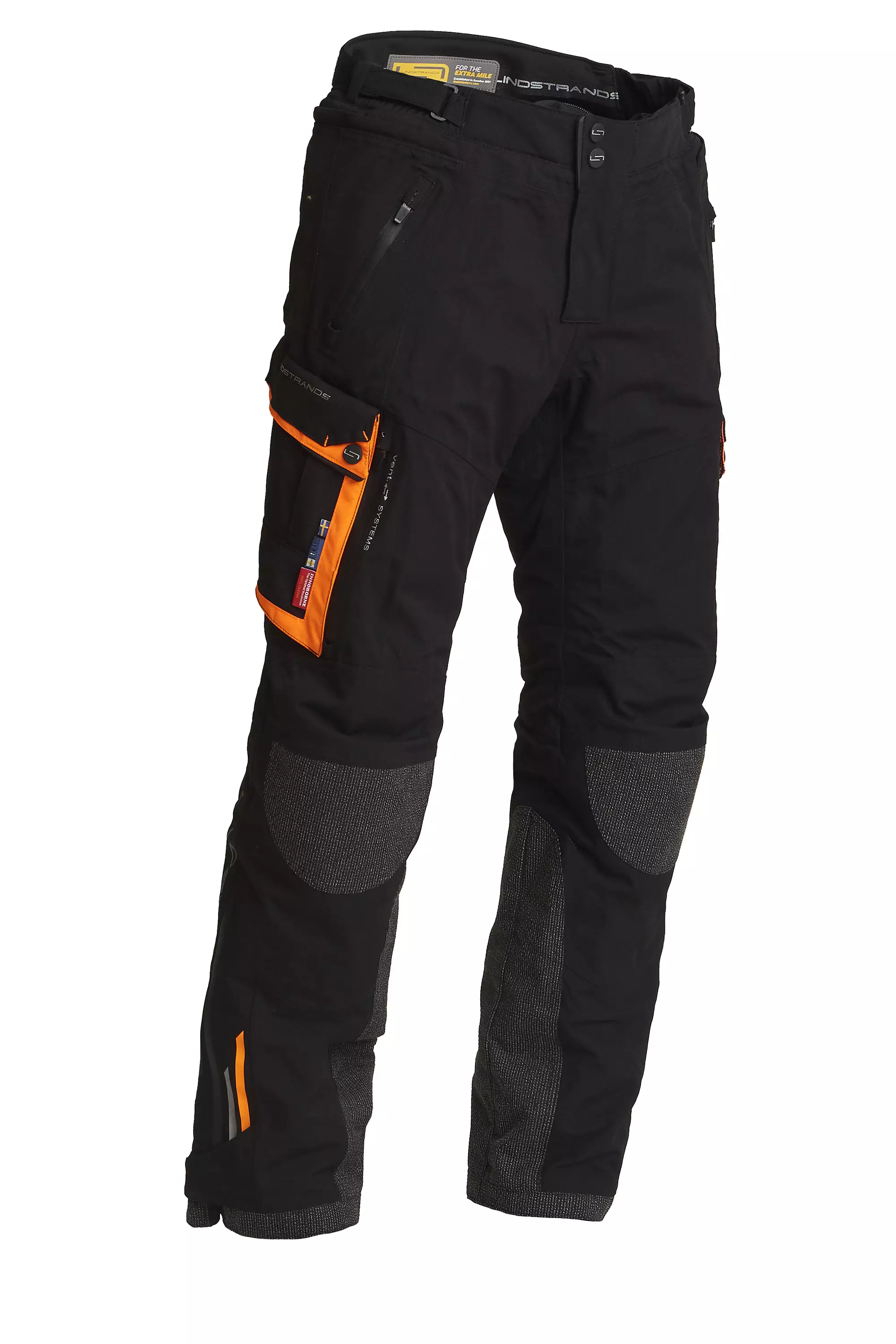 MC byxor Lindstrands Sunne, svart/orange