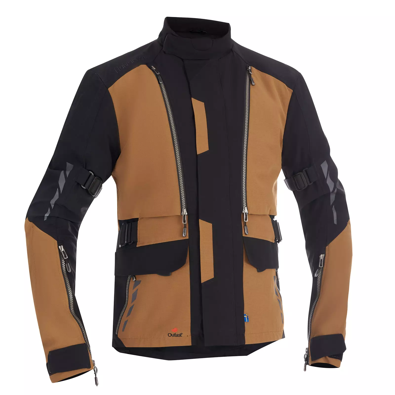 En lång anslutningsdragkedja gör det möjligt att fästa jackan i byxor, vilket ger ökad komfort och skydd under körning.