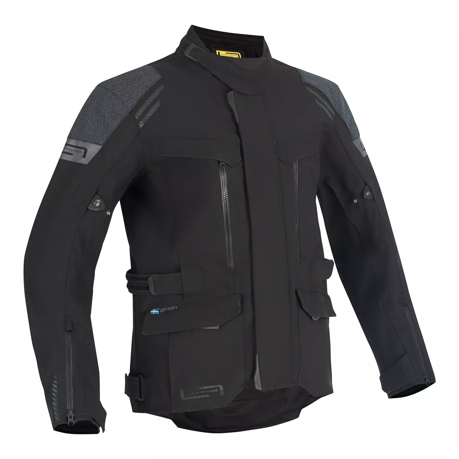 Lindstrands Storbo är en modern motorcykeljacka i textil som är utvecklad för förare som behöver ett vädertåligt och välventilerat körplagg för touring och vardagskörning. Den laminerade konstruktionen, det flexibla materialet och den höga säkerhetsnivån gör jackan till ett utmärkt val för varierande körförhållanden. Jackan är tillverkad av ett flexibelt textilmaterial som förbättrar rörligheten och anpassar sig till körställningen. Dryway+ laminerat membran gör jackan vind- och vattentät samt andningsbar, vilket hjälper till att hålla föraren torr och bekväm även under längre körningar.