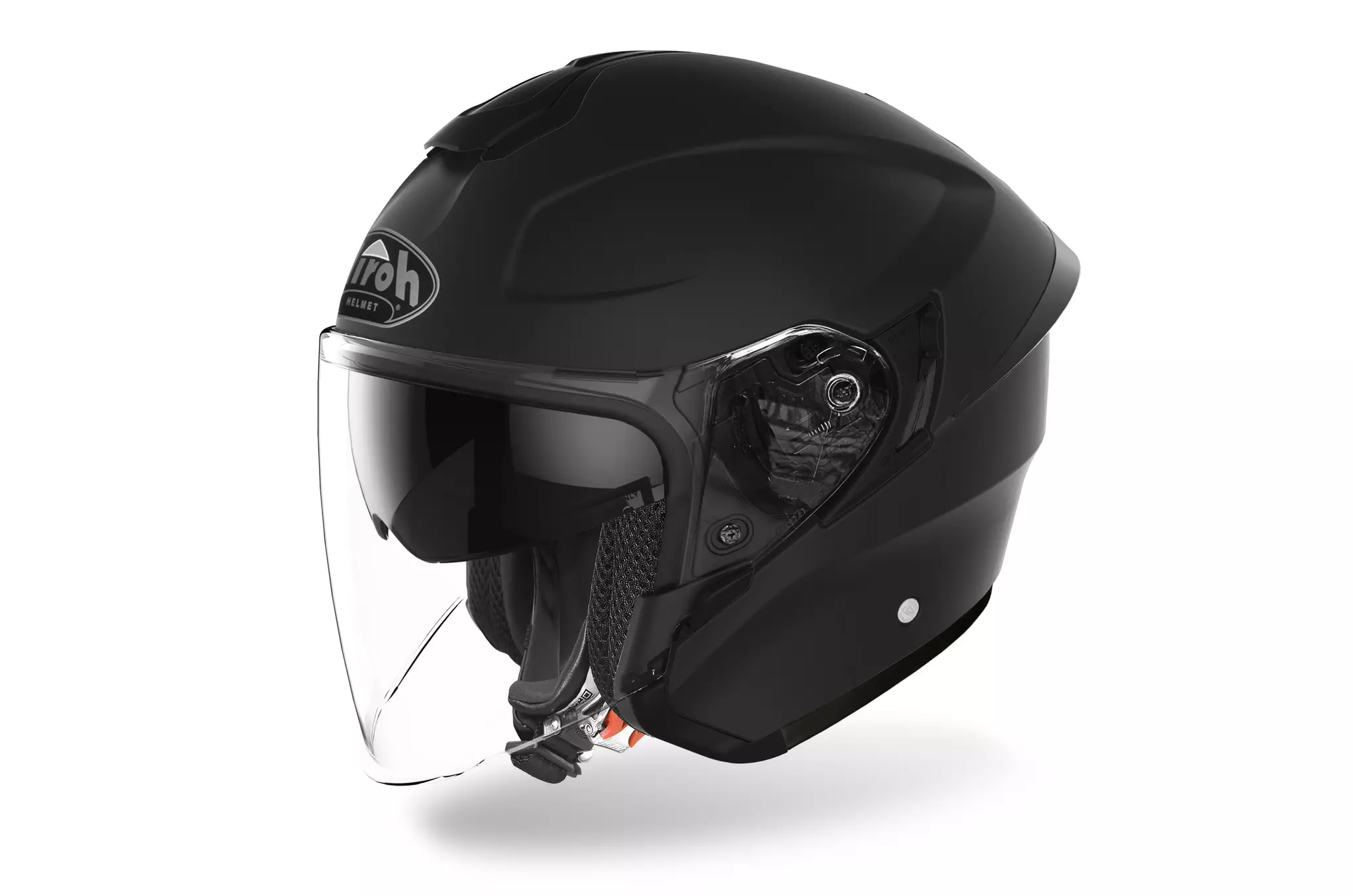 Tillverkat av High Performance Composite (HPC), tillgängligt med ett yttre skal i tre olika storlekar. Airohs nya långa jetvisir extremt motståndskraftigt och samtidigt bland de lättaste som finns på marknaden, tack vare det senaste material som används. Extra Wide-visiret, den moderna och aerodynamiska designen, ventilationssystemet, det integrerade solskyddsskyddet och Pinlock®-linsen framhäver nöjet med att åka i staden och på landsbygden.